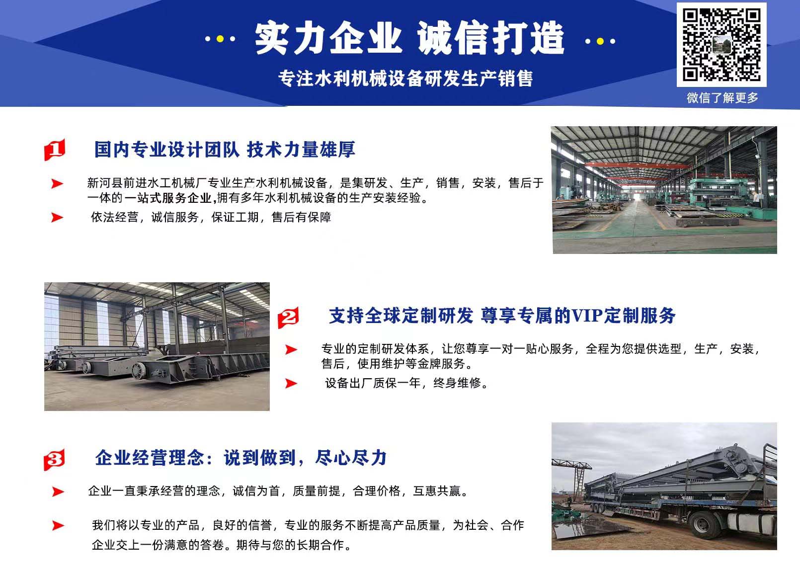 前進(jìn)水工優(yōu)勢:具有專業(yè)研發(fā)團(tuán)隊,精湛的制造工藝,嚴(yán)謹(jǐn)?shù)臋z驗(yàn)技術(shù),完善的售后服務(wù)